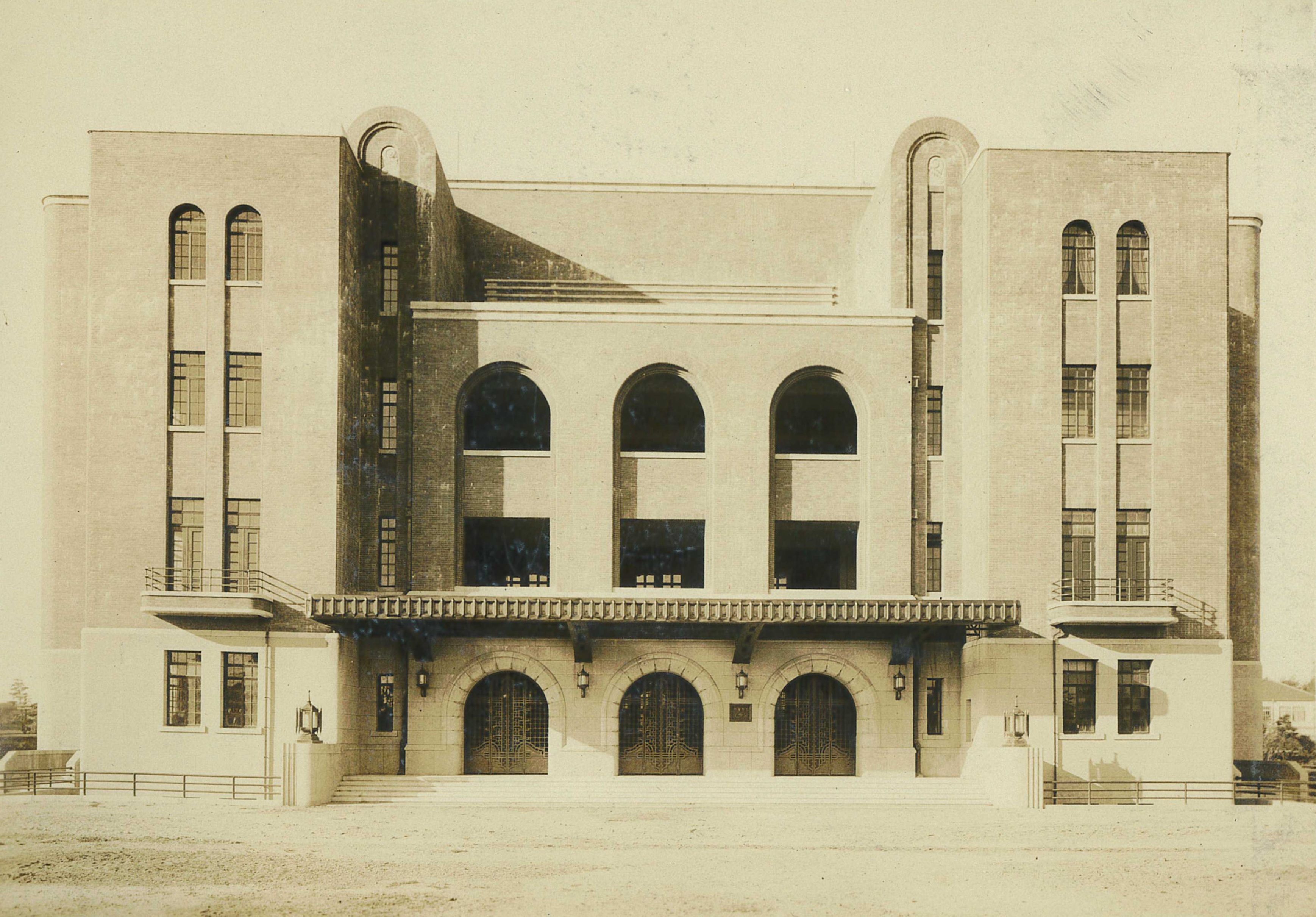 開館当時の公会堂正面 開館当時の大集会室(現在の大ホール)